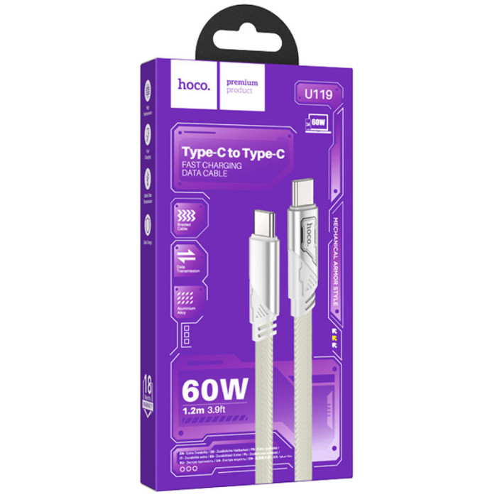 Дата кабель Hoco U119 Machine charging data Type-C to Type-C 60W (1.2m)