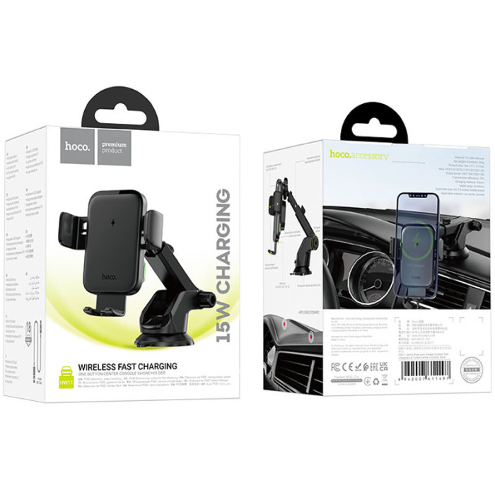 Автотримач з БЗП Hoco HW11 Jenny three-axis linkage (center console)
